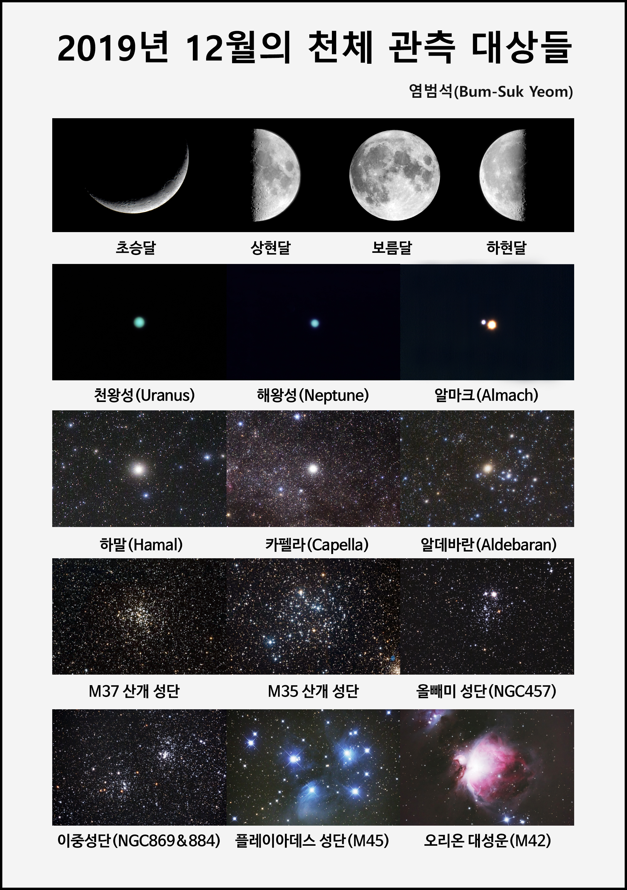 2019년 12월의 천체 관측 대상들.