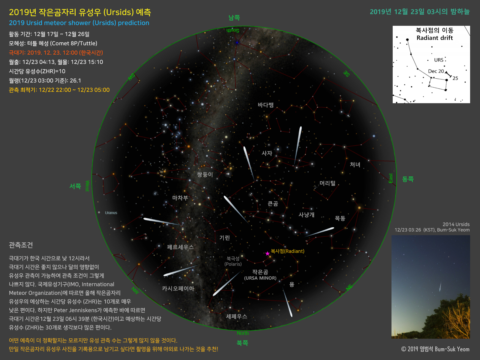 2019년 작은곰자리 유성우 (Ursids) 예측.