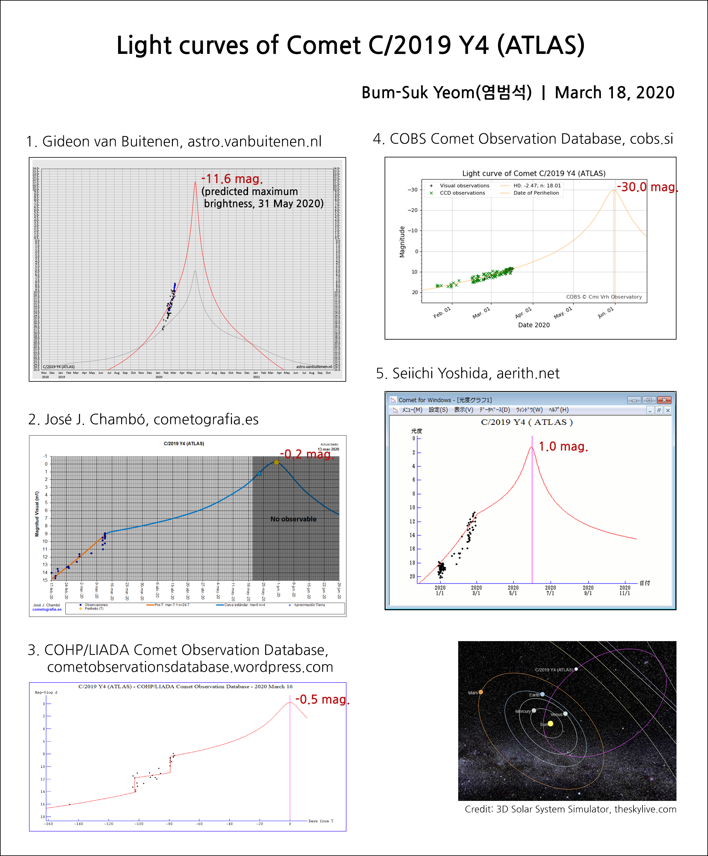 아틀라스(C/2019 Y4) 혜성의 광도 곡선들 (2020년 3월 18일 기준).