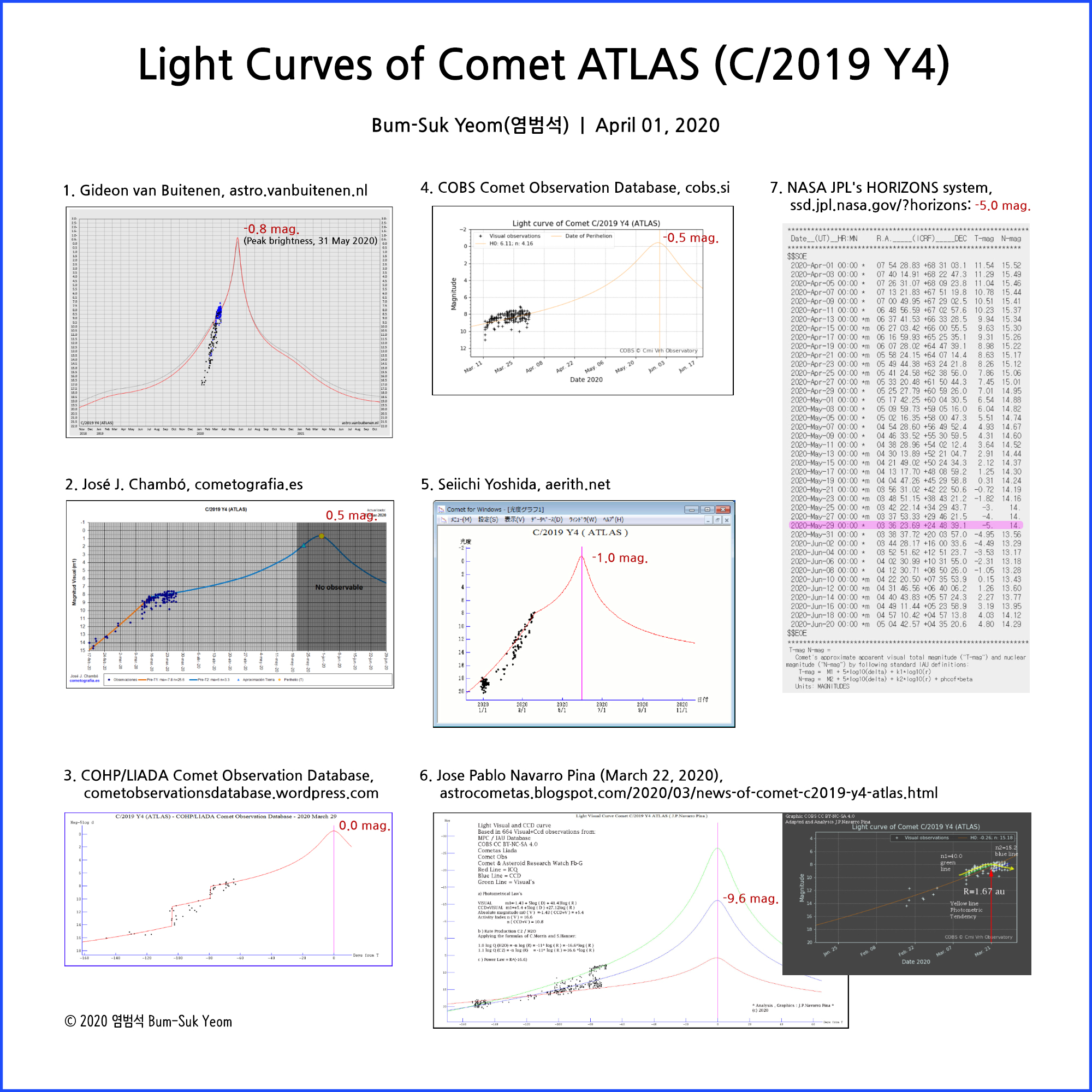 아틀라스(C/2019 Y4) 혜성의 광도 곡선들 (2020년 4월 1일 기준).