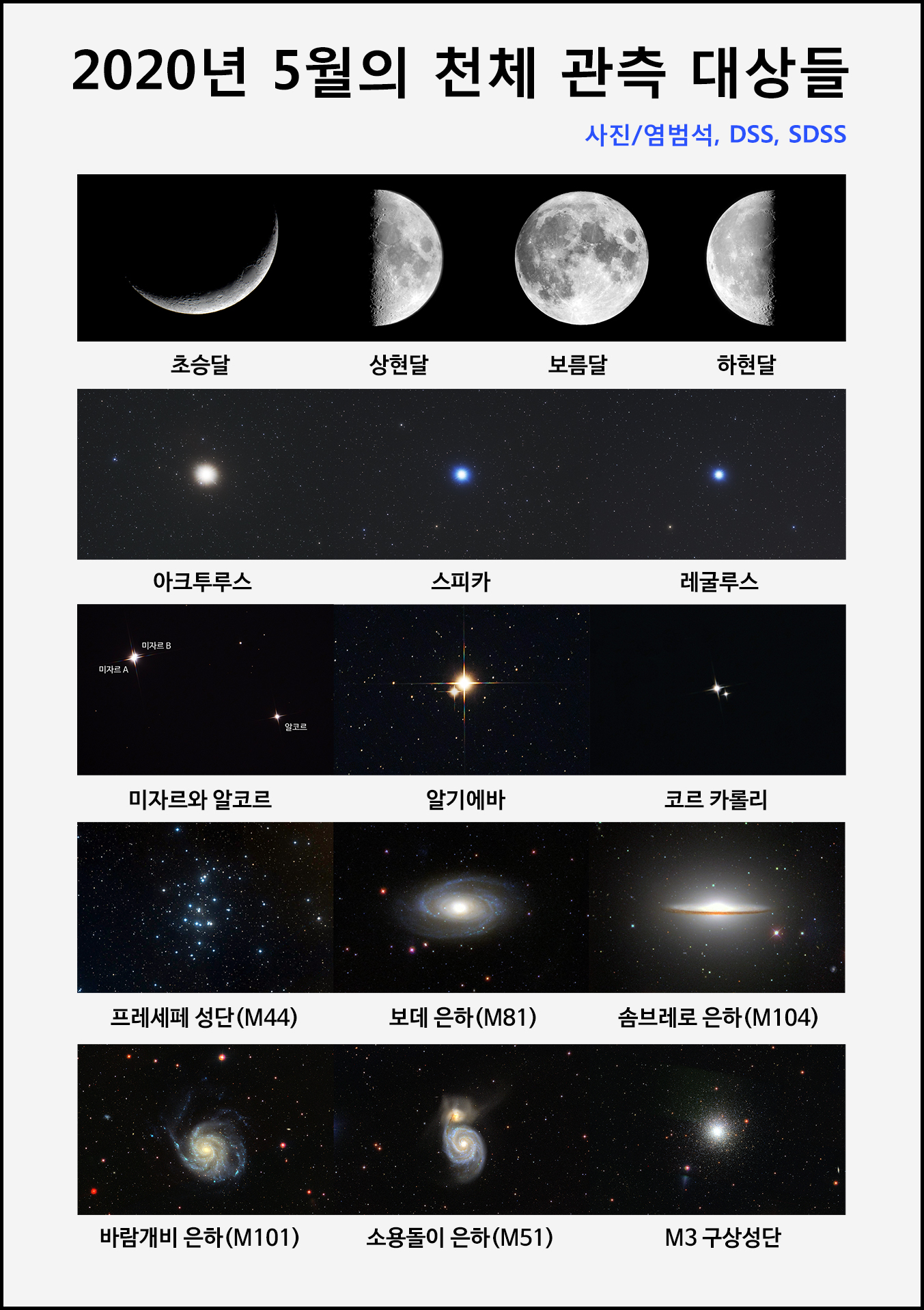 2020년 5월의 천체 관측 대상들.
