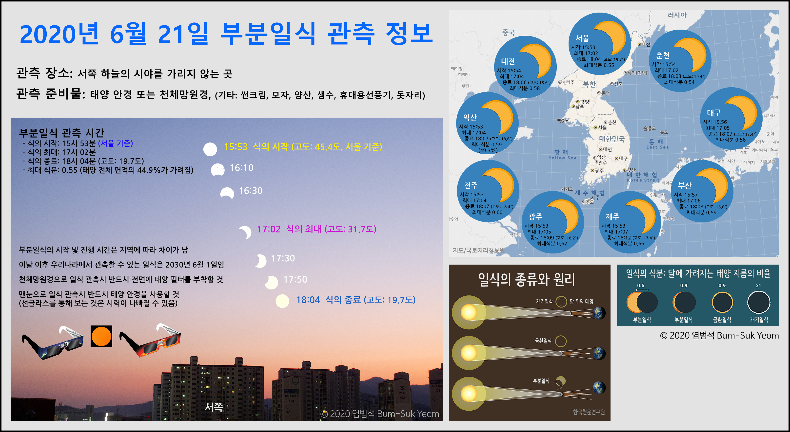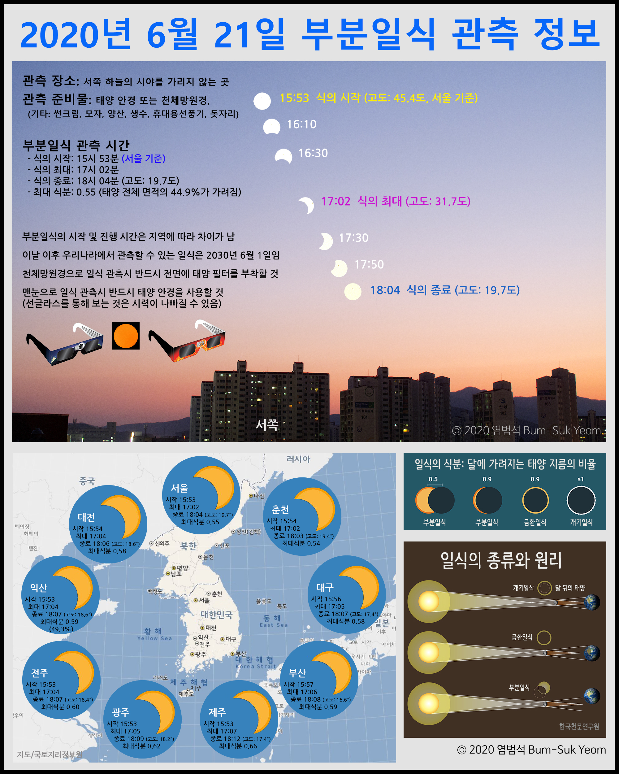 2020년 6월 21일 부분일식 (Partial Solar Eclipse) 정보.