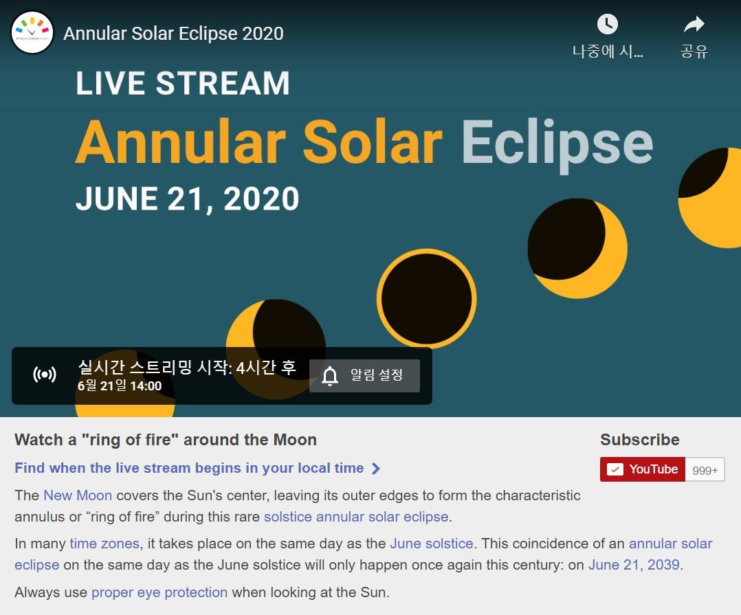 | 2020년 6월 21일 부분일식 (Partial Solar Eclipse) 정보 (0) | 2020.06.15 |