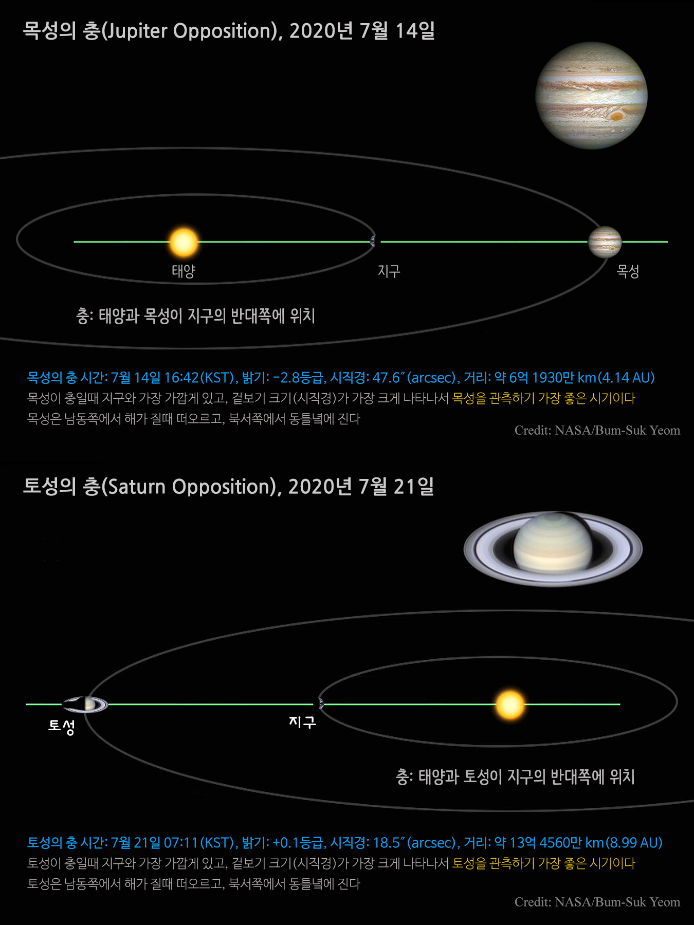 목성의 충(Jupiter Opposition, 2020-07-14)과 토성의 충(Saturn Opposition, 2020-07-21).