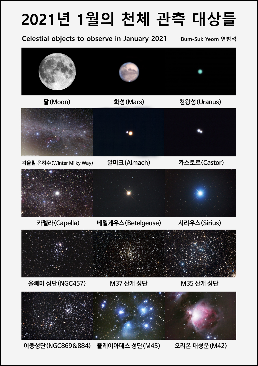 2021년 1월의 천체 관측 대상들.