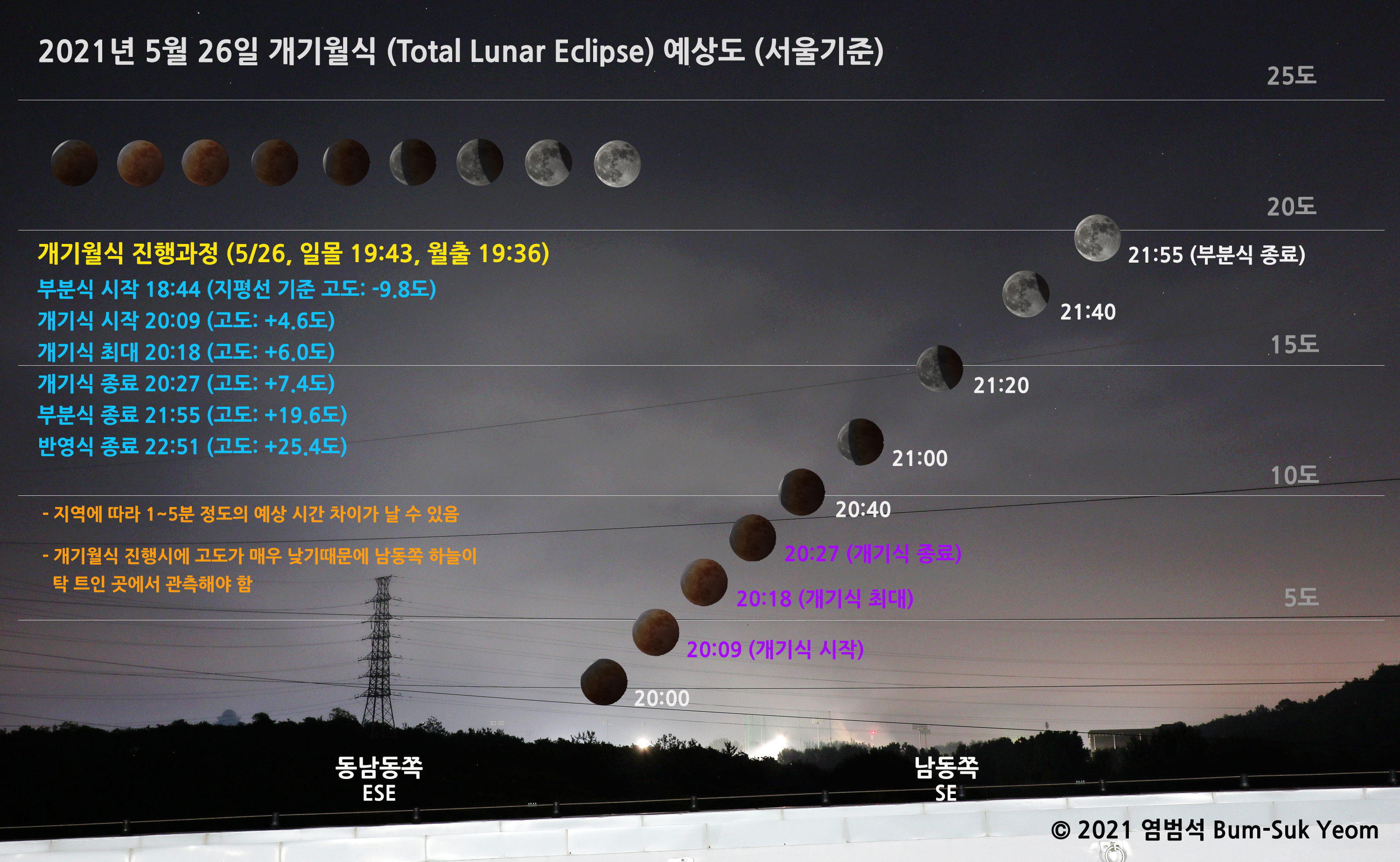 # 개기월식 진행과정 (5/26, 일몰 19:43, 월출 19:36)