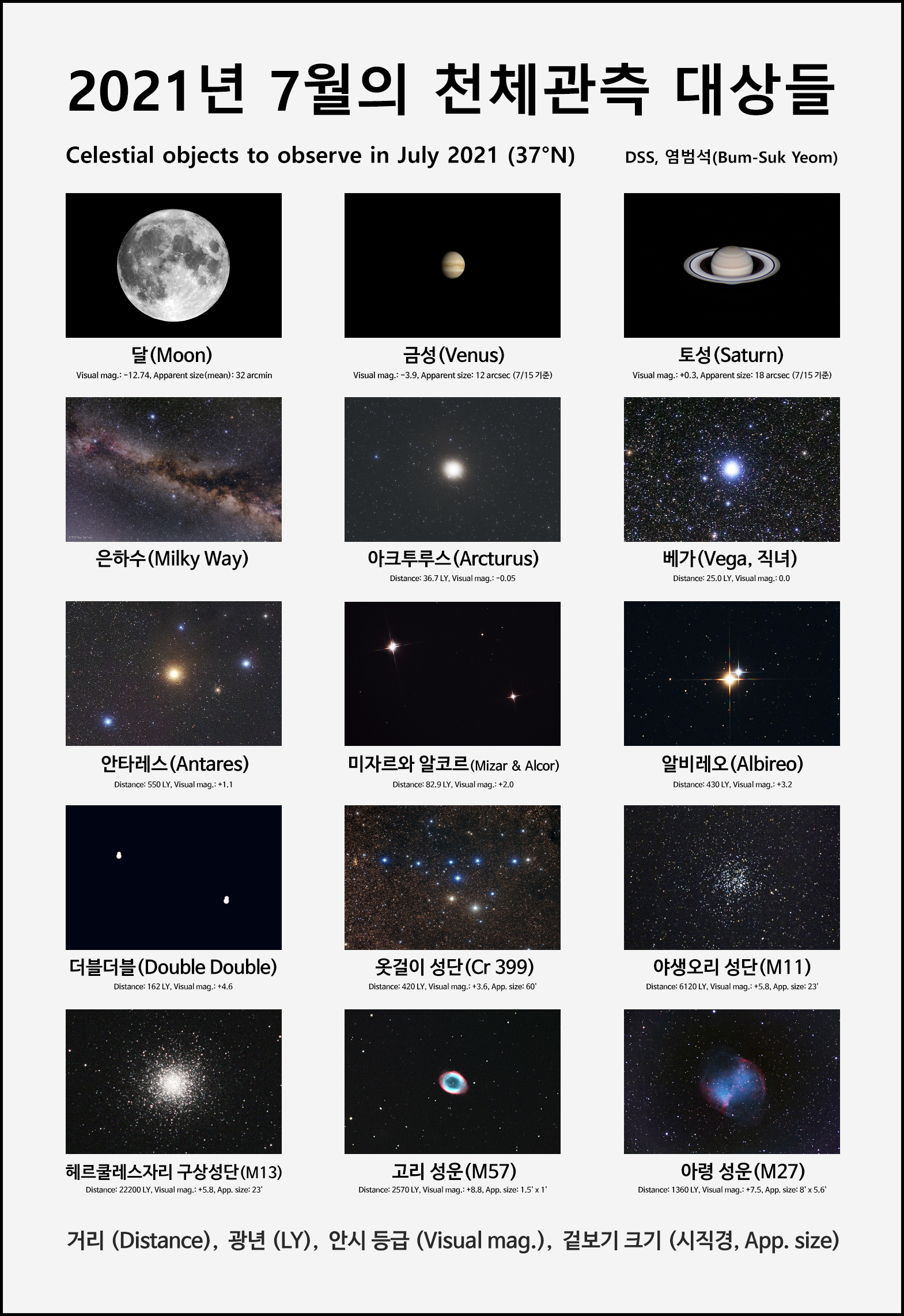 2021년 7월의 천체 관측 대상들.