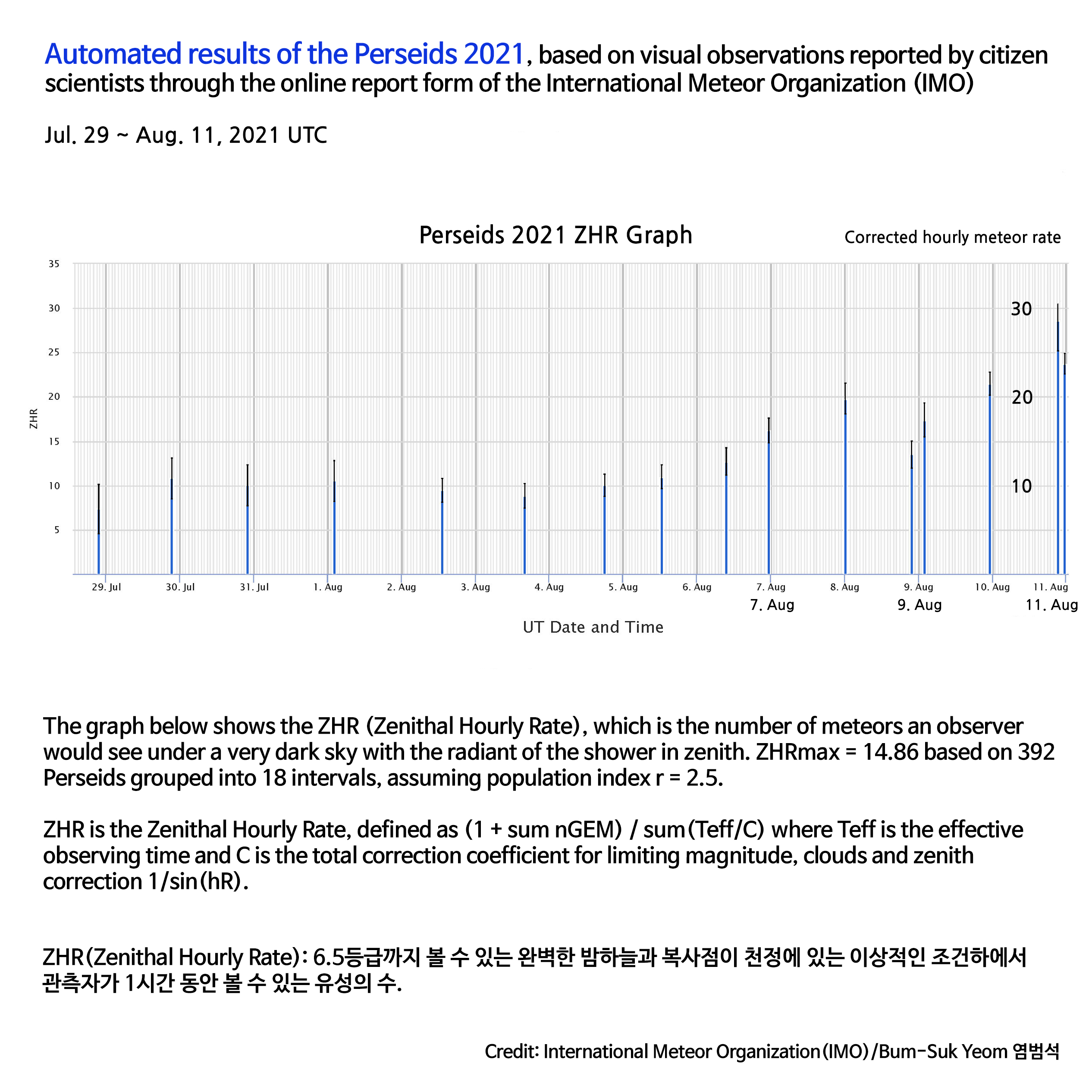 | 2021 Perseids Live Graph! 2021 페르세우스자리 유성우 실제 관측 통계 (0) | 2021.08.08 |