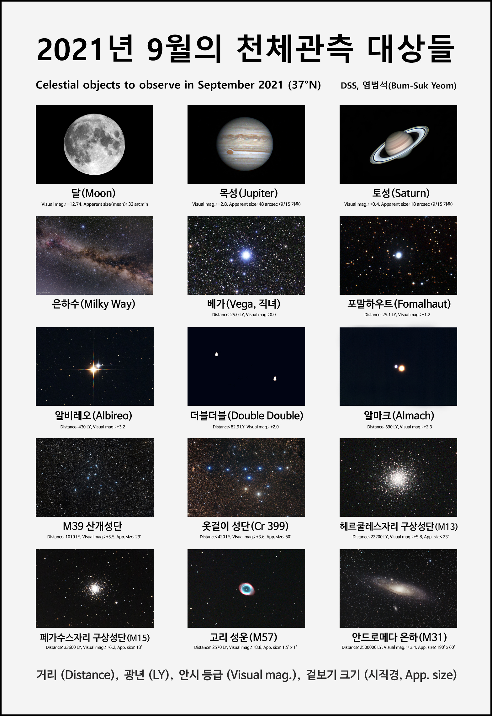 2021년 9월의 천체 관측 대상들.