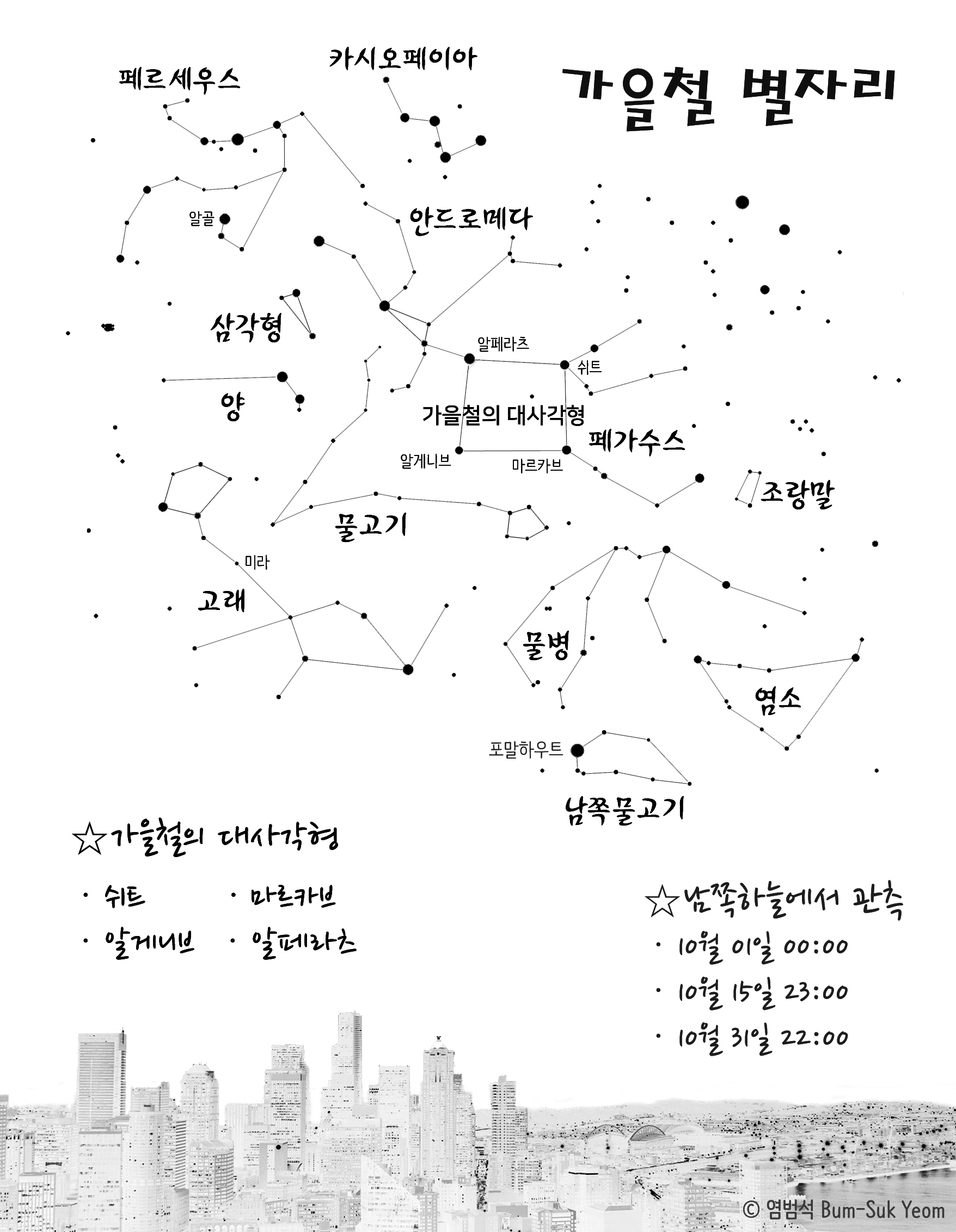 2021년 10월, 가을철의 주요 별자리.