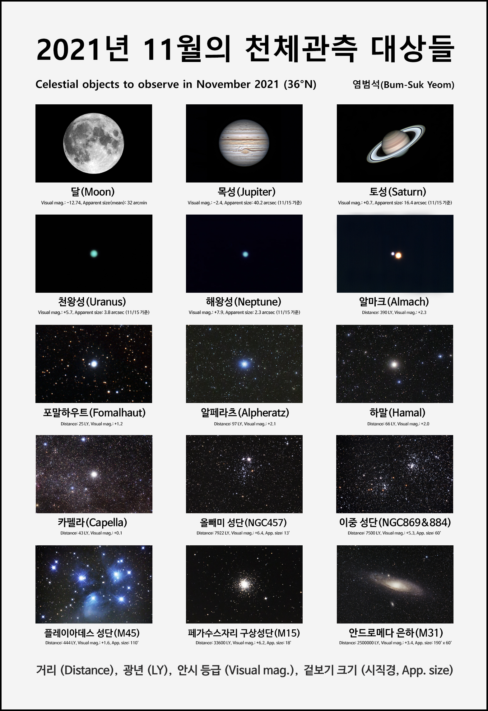 2021년 11월의 천체 관측 대상들.