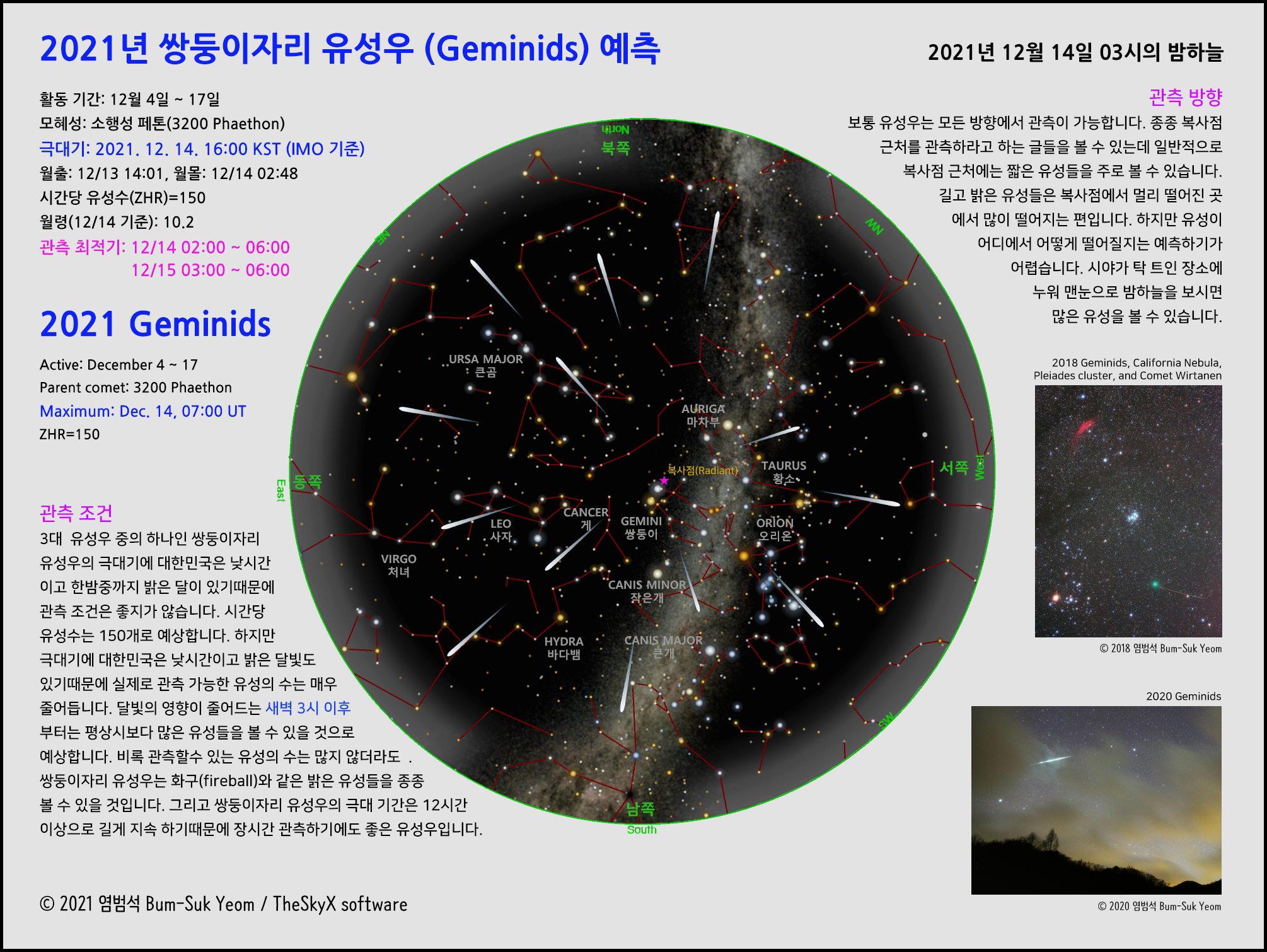 2021년 쌍둥이자리 유성우 (Geminids) 예측.