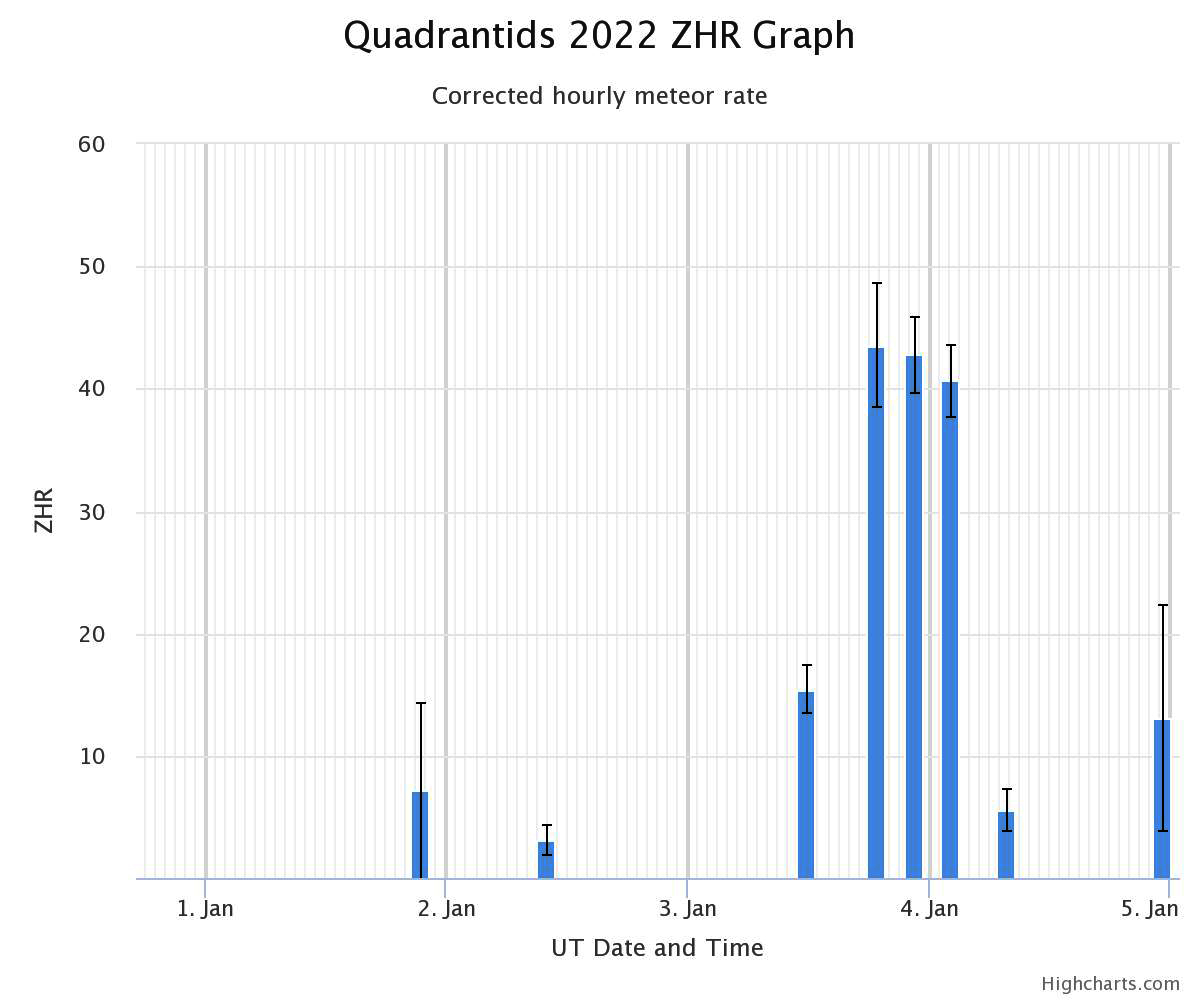 2022년 사분의자리 유성우(Quadrantids) 안시 관측 결과.