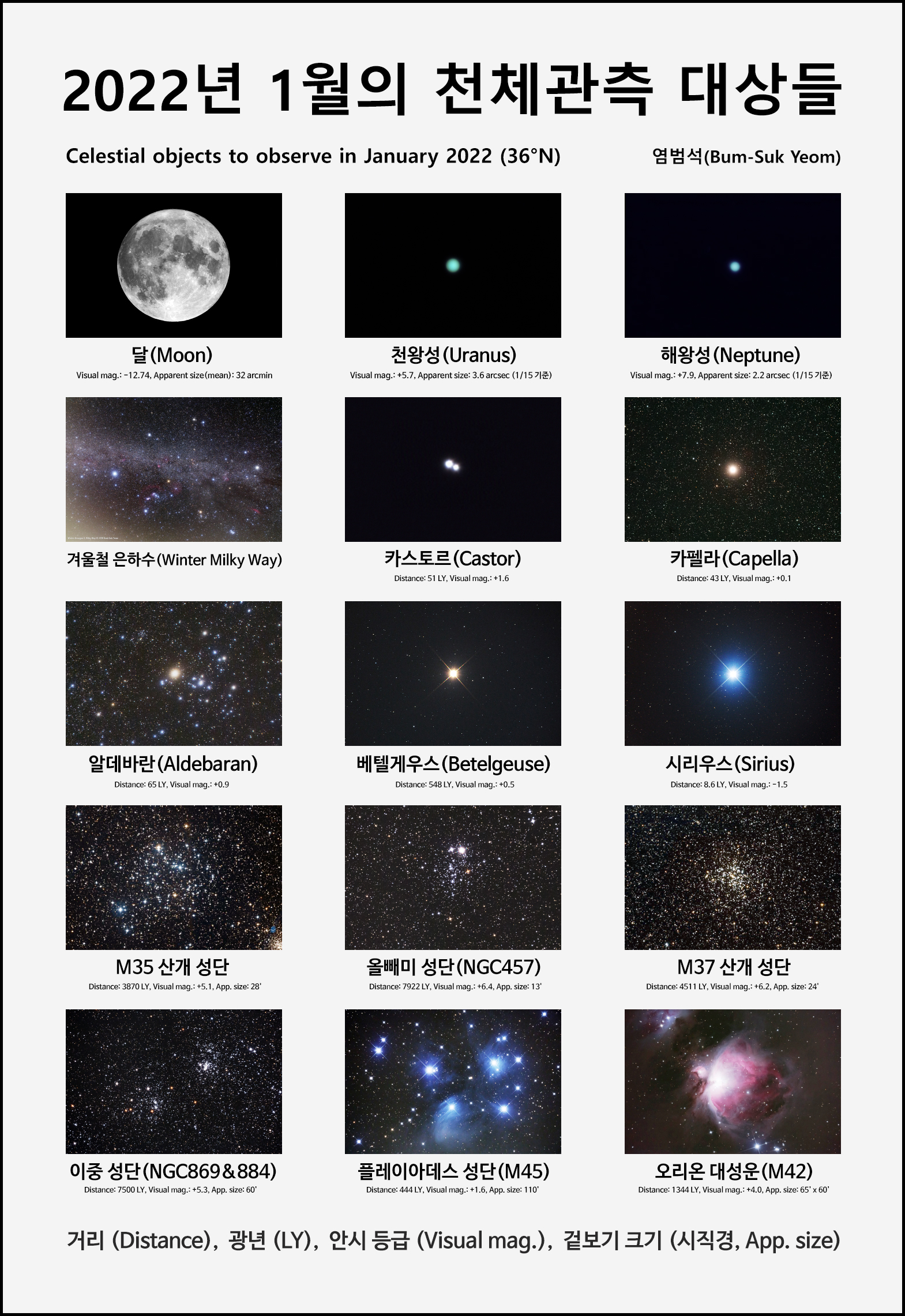 2022년 1월의 천체 관측 대상들.