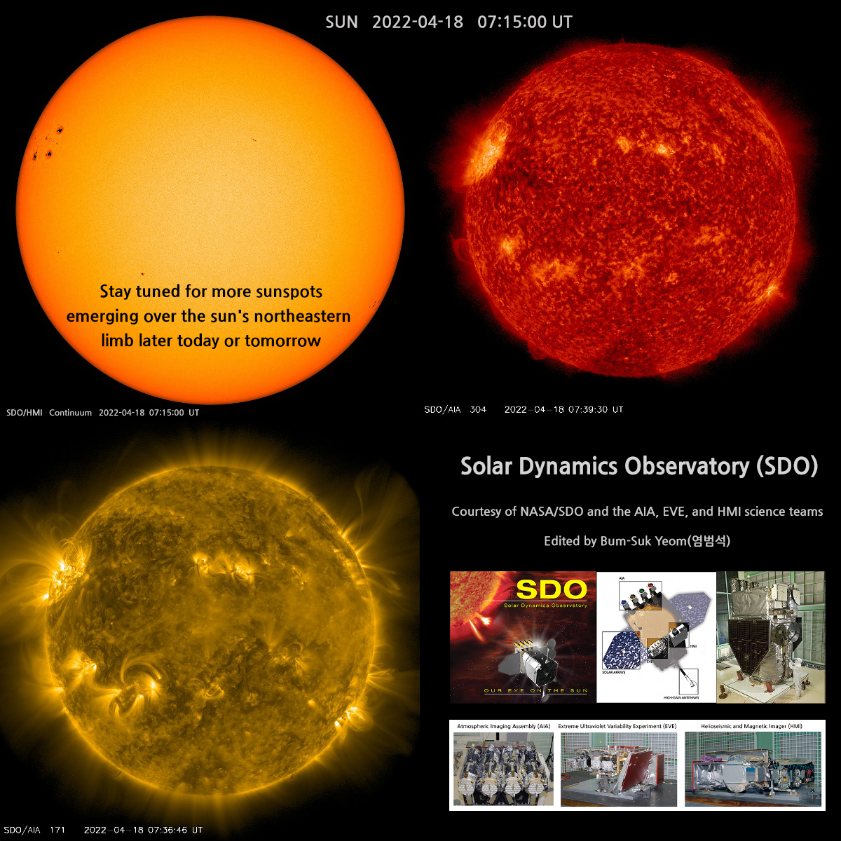 오늘이나 내일쯤 태양의 북동쪽 가장자리에서 나타날 더 많은 흑점들에 대해 계속 지켜봅시다.
