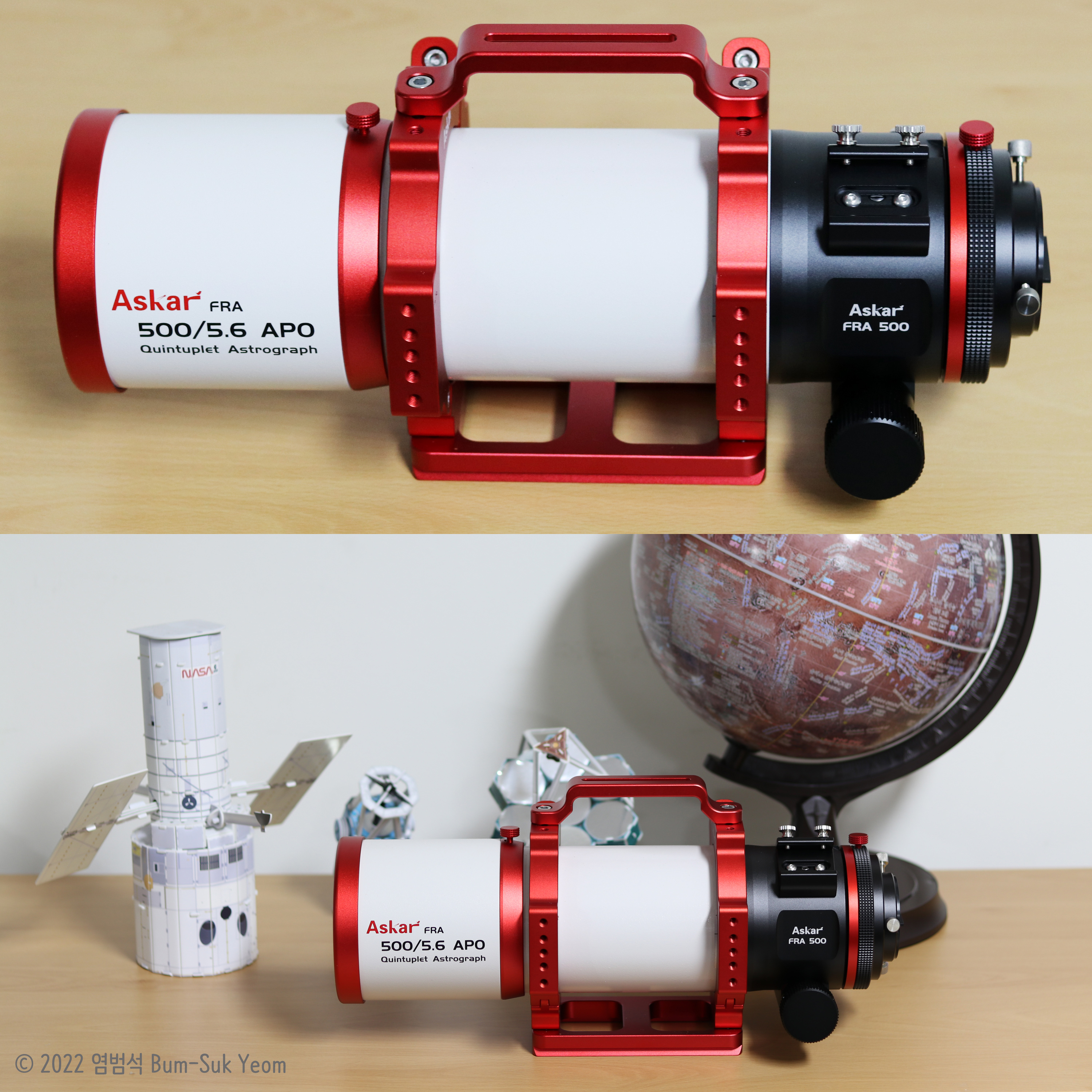 60mm 굴절망원경 (FS-60CB, f=355mm) -> 90mm 굴절망원경 (FRA500, f=500mm).