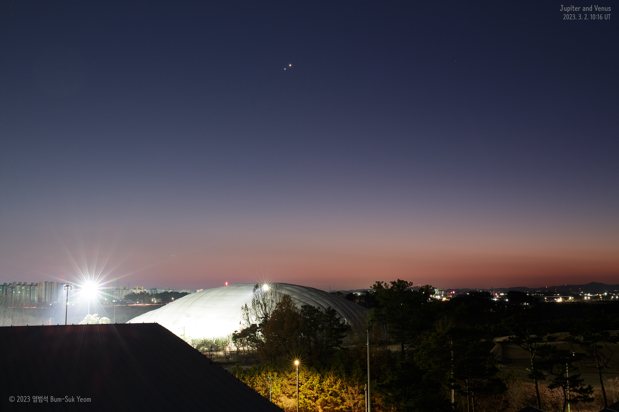 2023. 3. 2. 19:16 KST, 시그마 아트 40mm F1.4 렌즈, (필터 개조된) EOS 5D Mark III 카메라, 맨프로토 055 삼각대, f/11, ISO 1600, 노출시간 5초, 전라북도 익산시, 염범석.