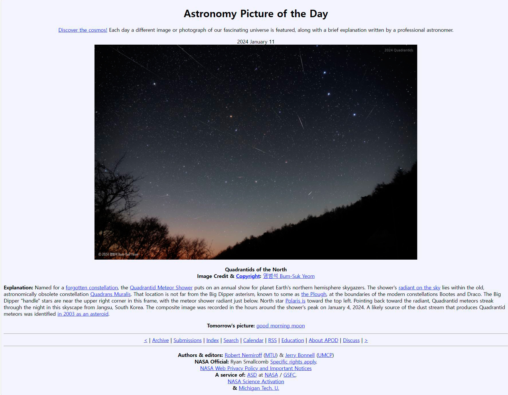 (2024년 1월 11일, 북쪽의 사분의자리 유성우).