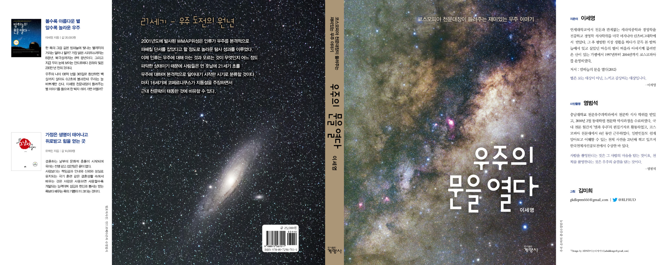 - 책 “밤하늘의 문을 열다” (2012년 6월, 계명사)의 사진 촬영을 담당. 책의 표지 및 수록된 천체 사진들을 촬영.