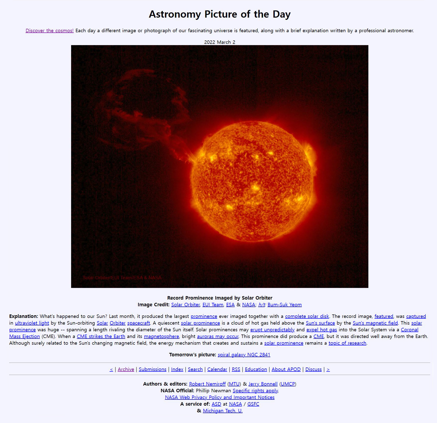 - 2022 March 2, Record Prominence Imaged by Solar Orbiter.