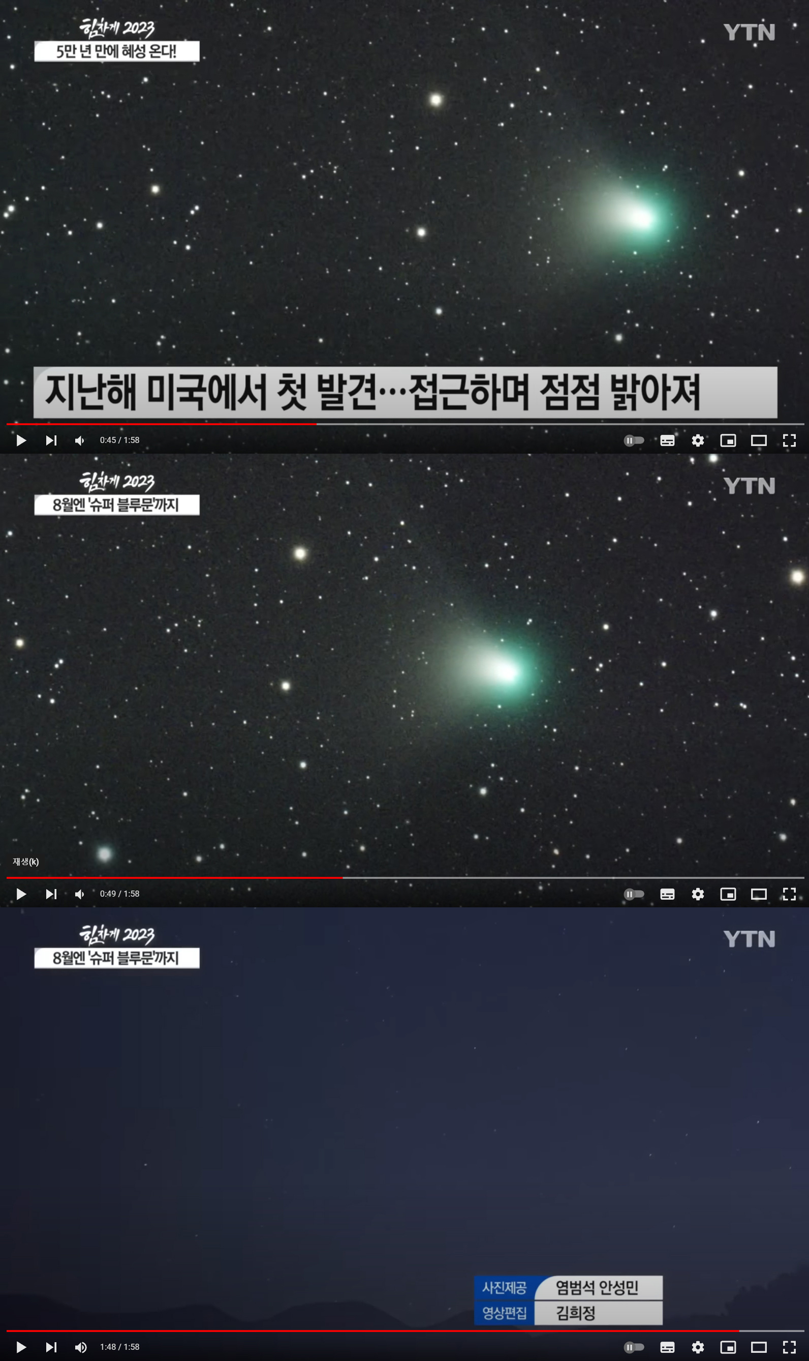 - YTN 뉴스, 2023년 1월 1일, 지티에프 (ZTF, C/2022 E3) 혜성 사진.