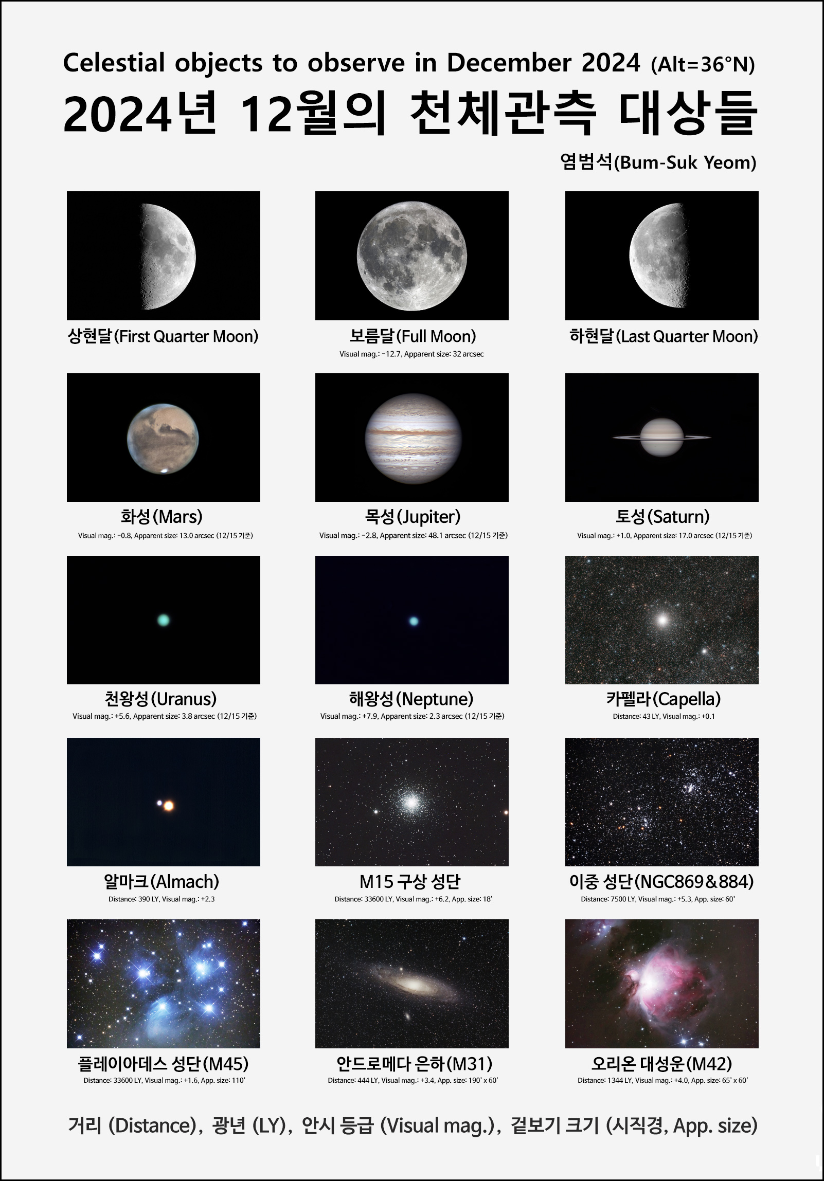 2024년 12월의 천체 관측 대상들.
