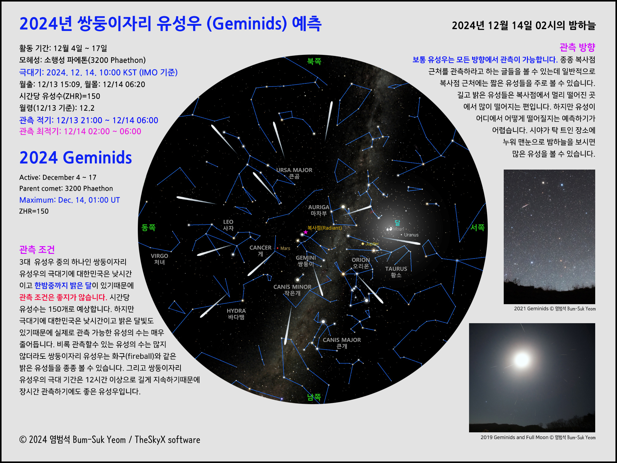 * 2019 Geminids and Full Moon (images) : https://cometsky.tistory.com/1008