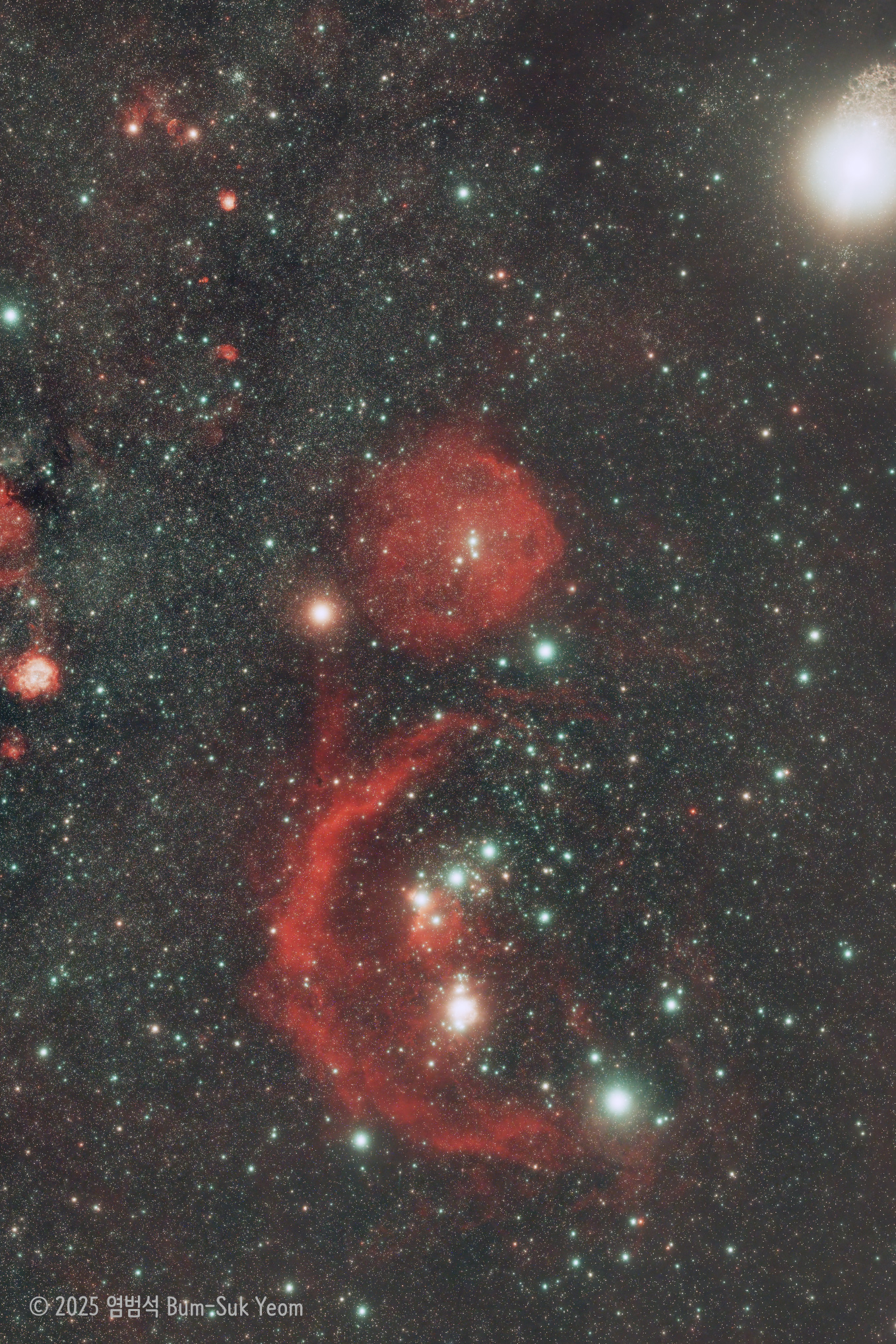 Details: 13:03 UTC, Sigma Art 40mm F1.4 lens, ZWO ASI6200MC Pro camera, iOptron HAE18C mount, IDAS NBZ II Nebula Booster filter & Lee soft no. 1 filter, Gain 200, f/4, 240 sec x 30 = 120 min(2 hours) exposure time, Bum-Suk Yeom.