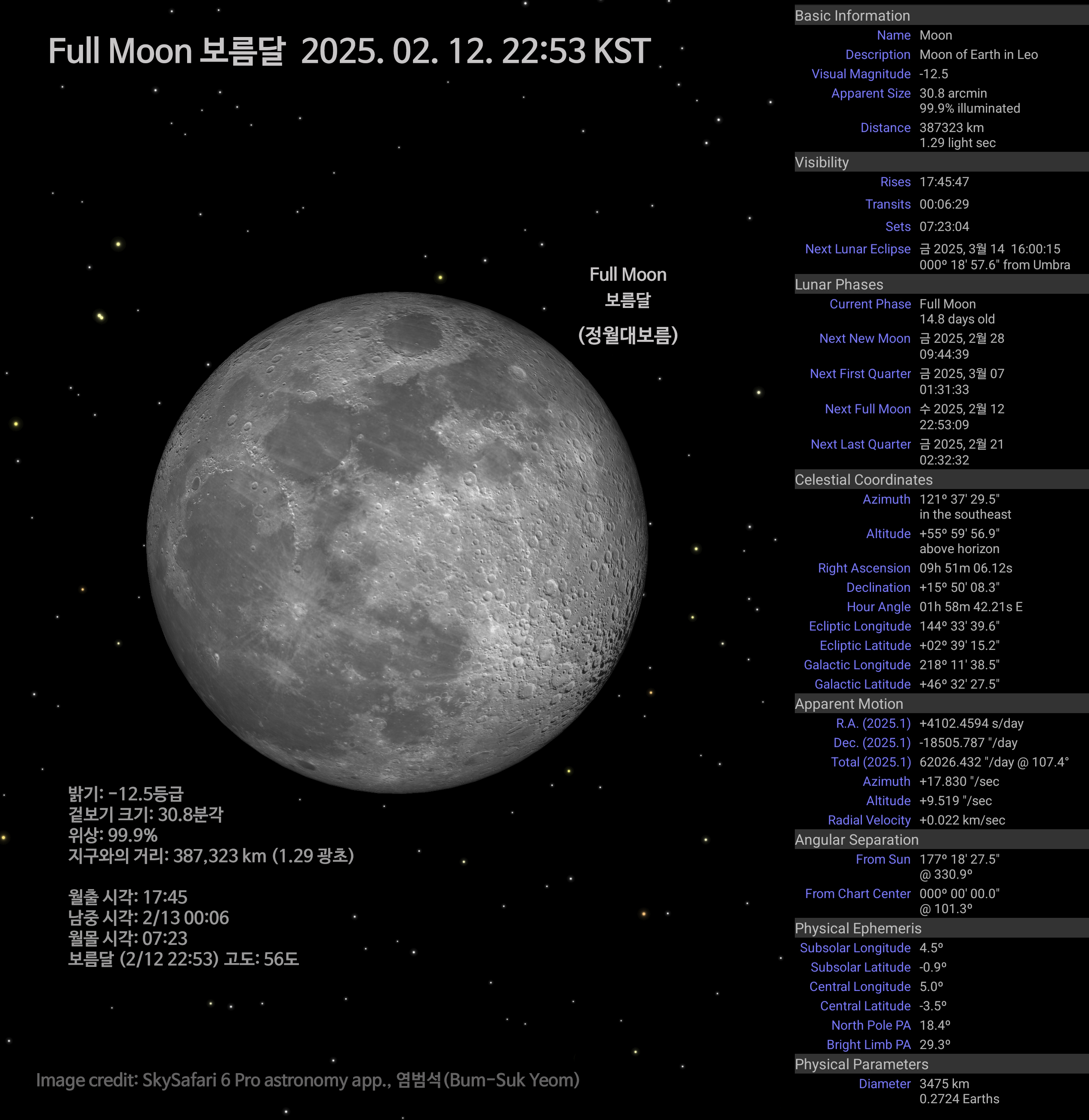 2025년 2월 12일 보름달 (정월대보름) 정보.
