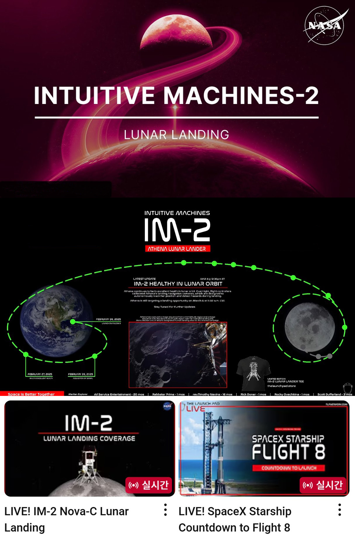 IM-2 노바-C 달 착륙선 착륙과 스타쉽 8차 발사 생중계!