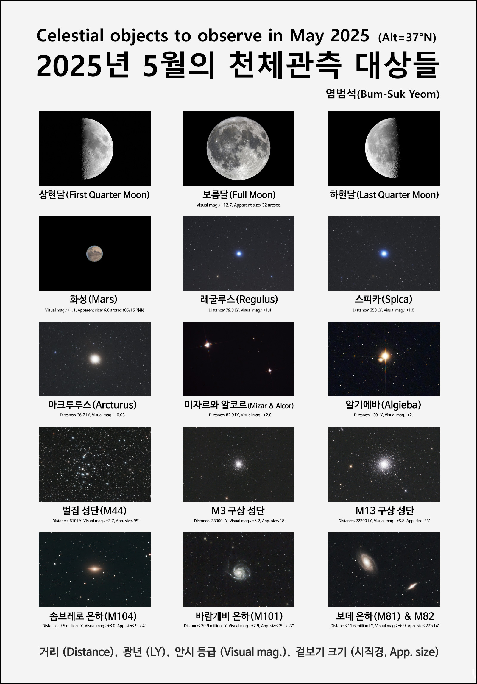 2025년 5월의 천체 관측 대상들.