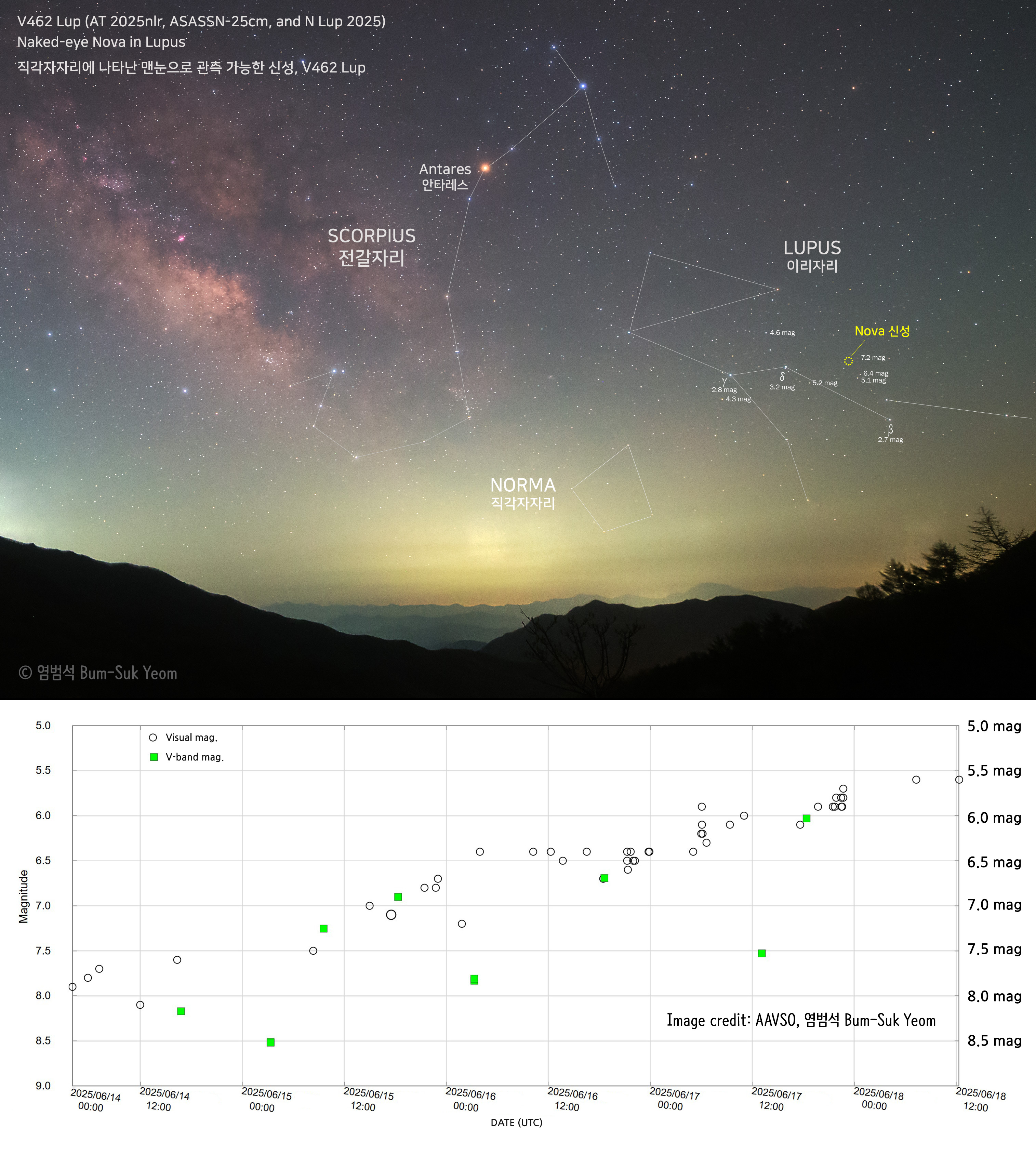 직각자자리에 나타난 맨눈으로 관측 가능한 신성, V462 Lup.