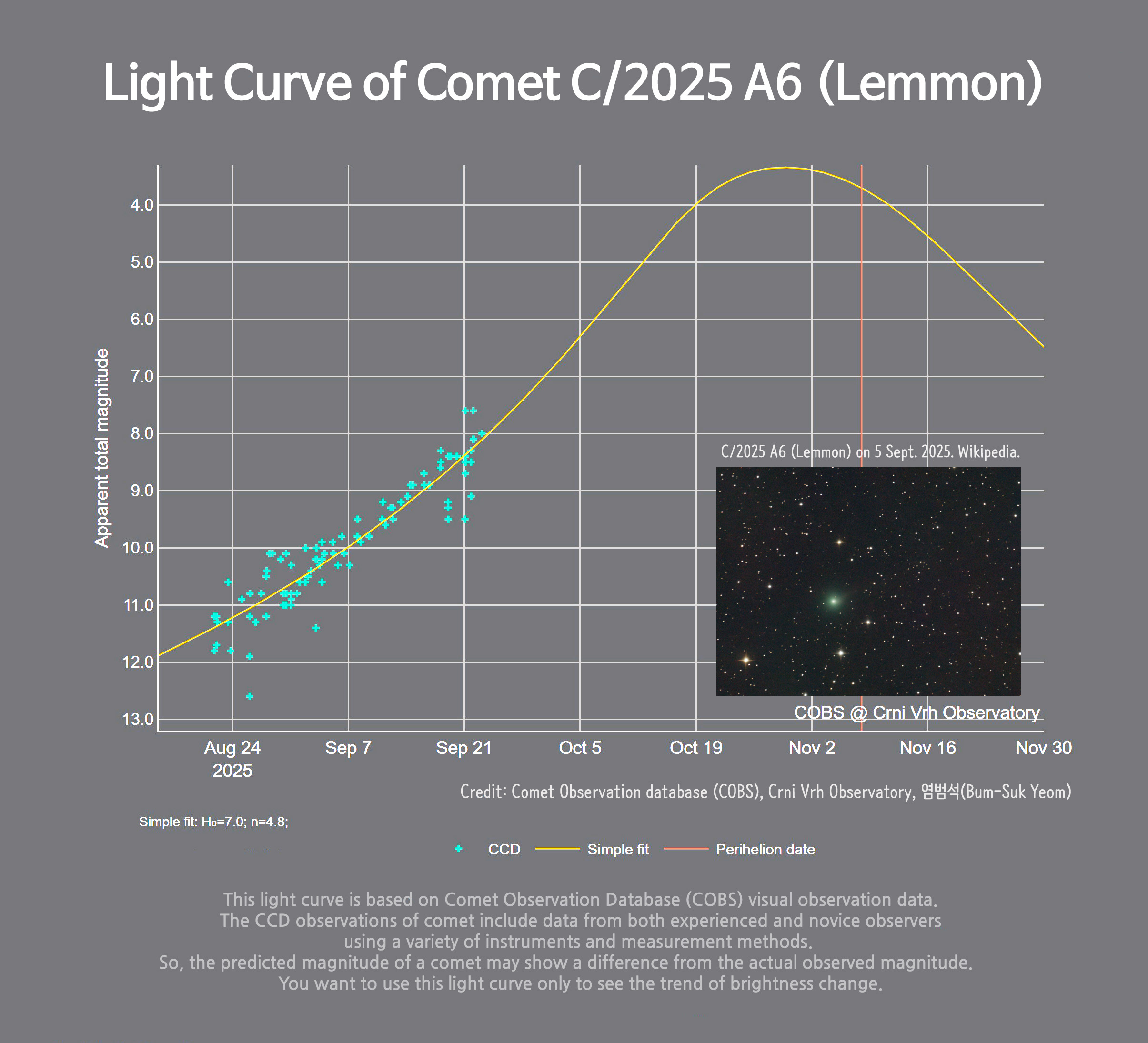 Credit: Comet Observation Database (COBS), Crni Vrh observatory, Bum-Suk Yeom (염범석).