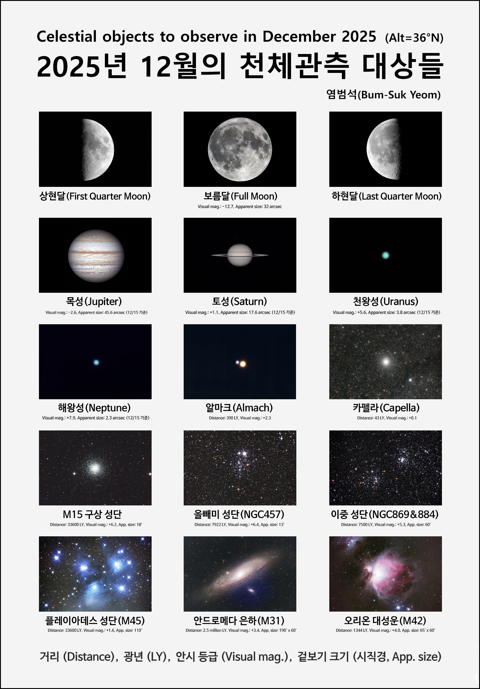 2025년 12월의 천체 관측 대상들.