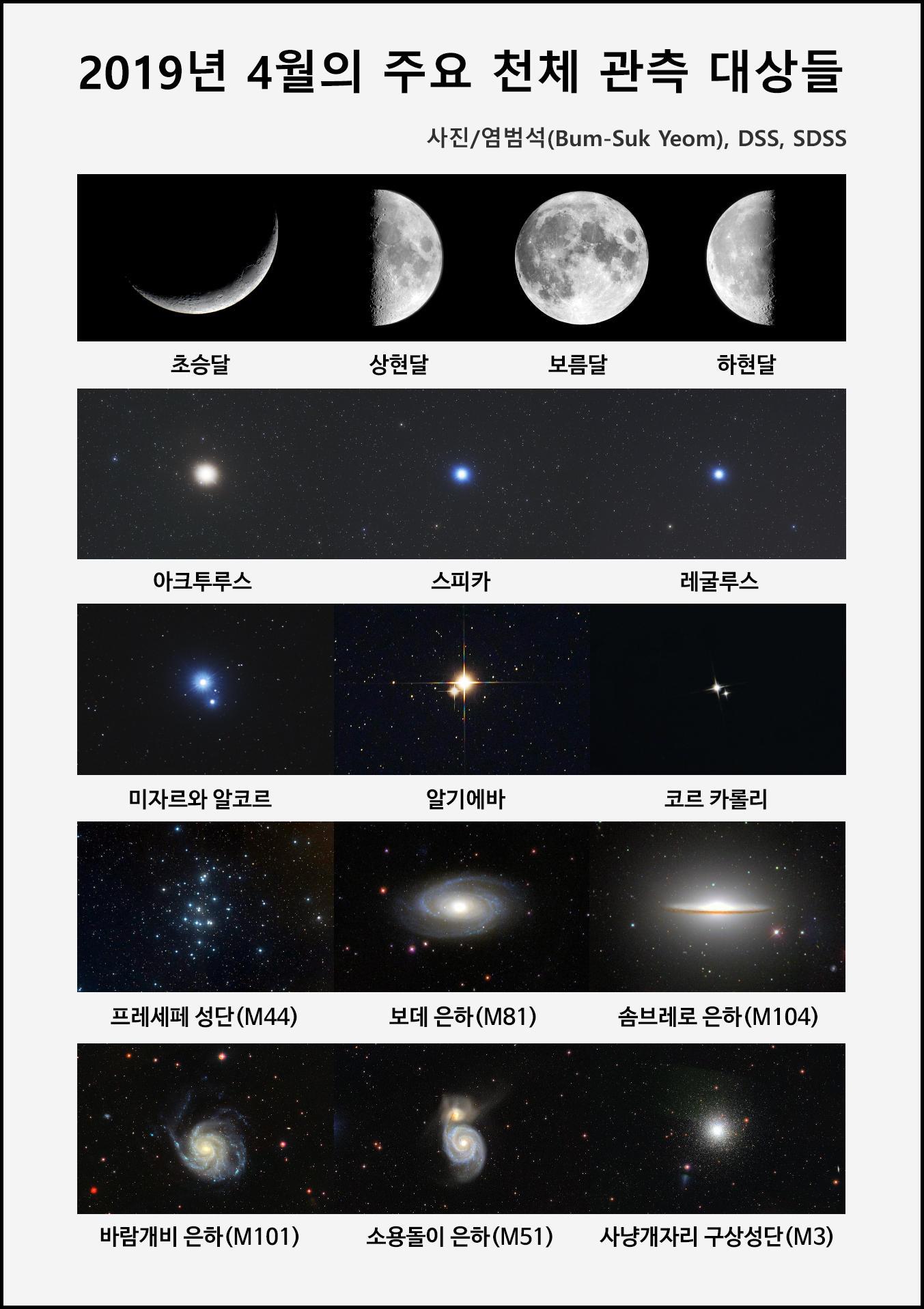 2019년 4월의 천체 관측 대상들.
