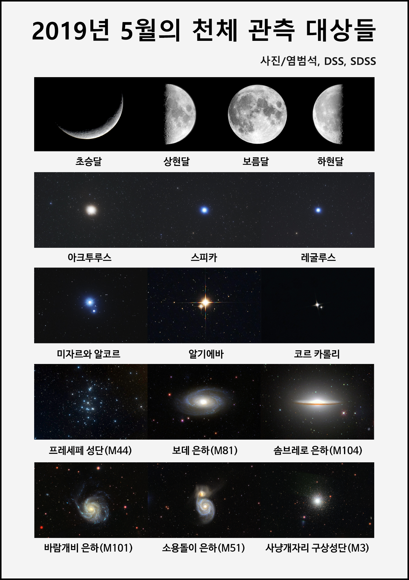 2019년 5월의 천체 관측 대상들.